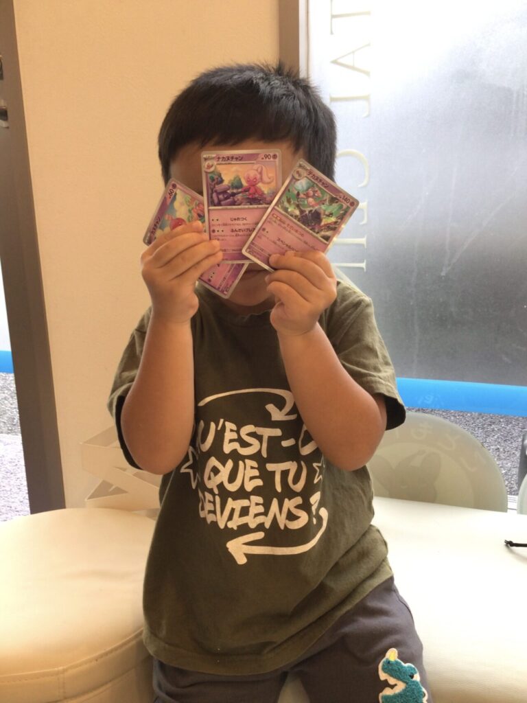 従来お渡ししていた消しゴムに加えて新しくポケモンカードが増えました☆